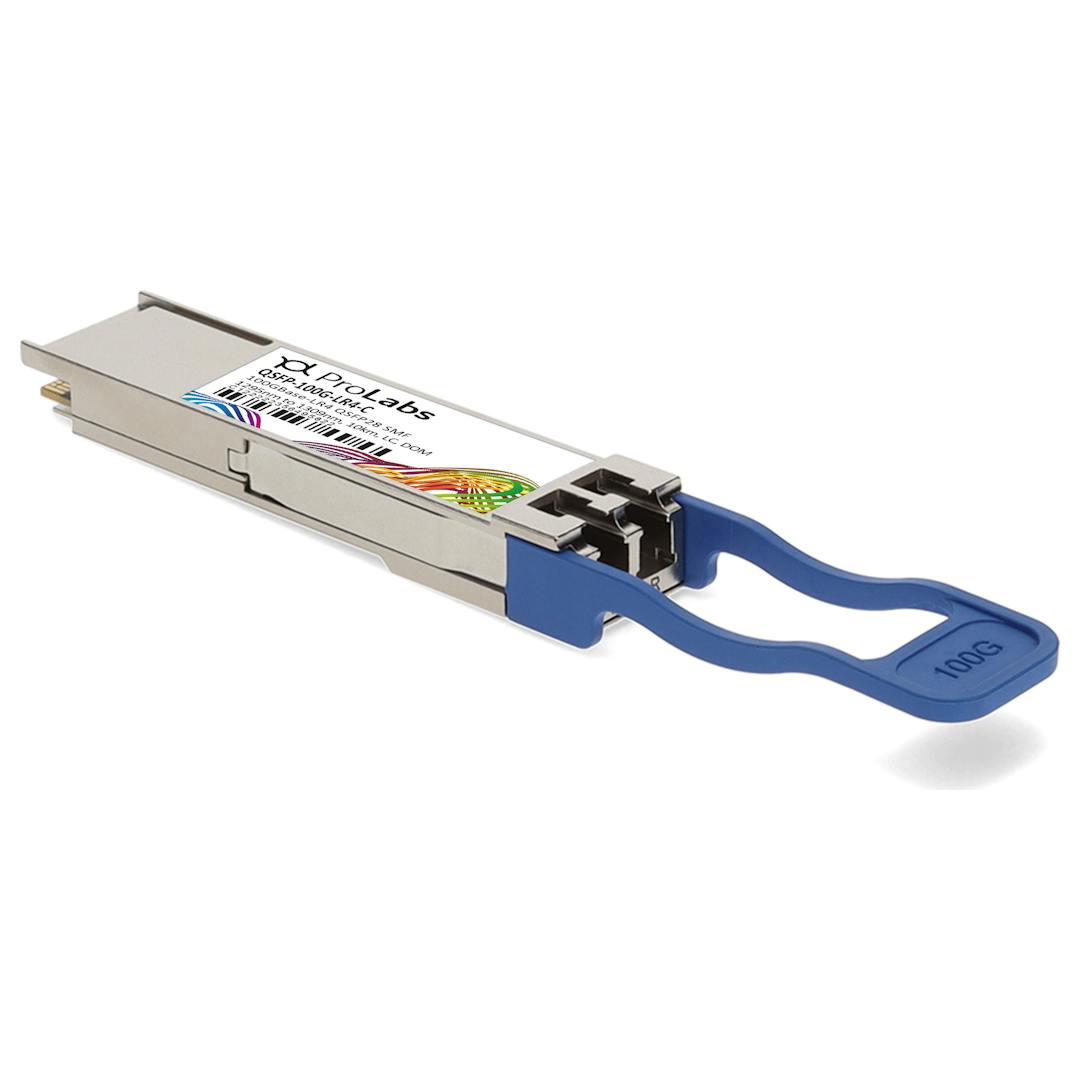 This Cisco® QSFP-100G-LR4 compatible QSFP28 transceiver provides 100GBase-LR4 throughput up to 10km over single-mode fiber (SMF) using a wavelength of 1295nm to 1309nm via an LC connector. This transceiver is built to meet or exceed OEM specifications and is guaranteed to be 100% compatible with Cisco®. It has been programmed, uniquely serialized, and tested for data-traffic and application to ensure that it will initialize and perform identically. All ProLabs transceivers comply with Multi-Source Agreement (MSA) standards to provide seamless network integration. Additional product features include Digital Optical Monitoring (DOM) support which allows access to real-time operating parameters. This transceiver is Trade Agreements Act (TAA) compliant. ProLabs offers a limited lifetime warranty for their products.